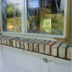 In dieser Woche wurde viel geschafft. Zunächst wurden endlich unsere Holzfenster mit zwei LKW´s geliefert. Sechs Mann waren nötig, um die Terrassenfenster über das Grundstück nebenan nach hinten ins Haus zu tragen. Innerhalb von zwei Tagen waren alle Fenster zu unserer Zufriedenheit eingebaut. Um die Fenster bei den weiteren Arbeiten nicht zu beschädigen wurden diese anschließend abgeklebt, sodass wir uns daran gewöhnen mussten, um das Haus herum und nicht mehr durch unsere Terrassenöffnung zu laufen. Des Weiteren wurden die Wände im OG einseitig beplankt und die Sanitärfirma baute gleichzeitig das Einbauelement für die Toilette im Bad ein. Der Sockel des Hauses wurde mit Bornitdichtmasse verspachtelt. Nun konnten auch die Klinkerarbeiten starten. Zunächst wurde mit der Seitenwand begonnen. Gleichzeitig wurden die Rollschichten der Fensterbänke im OG gemauert. Wir freuten uns über den Anblick unserer schönen und lang gesuchten Abrissklinker. Ebenfalls begann die Fassadenfirma mit den Putzarbeiten im OG und trugen den Armierungsmörtel auf. Ende der Woche hatte der Elektriker als sechste Firma (allein in dieser Woche) mit seinen Arbeiten begonnen. Die finalen Absprachen zu treffen was wo hinkommt und wie geschalten wird, ließ nicht nur uns viele Nerven kosten. Wir besorgten uns im Baumarkt Kalkputz, um ein Putzmuster herzustellen und der Putzfirma zeigen zu können wie wir uns die Struktur der zu putzenden Wände im Innenbereich vorstellen. Am Wochenende beschäftigten wir uns mit den Farbproben für die Außenfassade im OG. Nachdem wir uns endlich für einen Farbstreifen entschieden hatten, mussten wir leider feststellen, dass uns die Putzprobe farblich nicht wirklich gefiel. Die Überlegungen begannen daher von neuem und beschäftigten uns wiederholt etliche Stunden.
