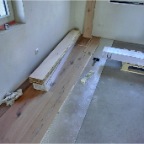 Mit der Parkettverlegung im ersten Raum rückt der Einzugstermin immer näher. Wir haben für die Verlegung im gesamten Haus eine Firma beauftragt. Wir als Laien meinen zu wissen, dass es logisch ist, dass die Parkettbretter selten in einen Raum passen ohne das am Ende das letzte Brett schmaler geschnitten werden muss. Die Logik besagt auch, dass es sicher merkwürdig aussieht, wenn der Abschluss ein sehr schmales Brett bildet. Aus der darauffolgenden Logik würde sich schließen, dass, um dies zu umgehen, es sicher sinnvoll wäre den Verschnitt auf verschiedene Raumenden aufzuteilen, um das optisch Wahrnehmbare möglichst gering zu halten. Da "Logik" jedoch nichts selbstverständliches ist, muss der Bodenleger am darauffolgenden Tag das bereits verlegte Parkett wieder hochnehmen und den Raum mit der zuvor beschriebenen Vorgehensweise neu verlegen. Das es auch im zweiten Raum einen nicht mehr reparablen Verschnitt an der Türschwelle gibt, blenden wir nun lieber aus. Als Konsequenz werden wir Urlaub nehmen, um die Arbeitsausführung in den anderen von Grund auf schwieriger zu verlegenden Räume überwachen zu können.